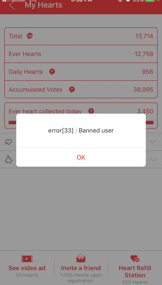 Make lots of accounts, borrow phones and install choeaedol and then put your username when the app asks for a recommender to gain 1000 HEARTS (Note: it will not work if it's the same device. DO NOT UNINSTALL THE APP because you will lose all hearts you accumulated)
